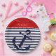 Custom Welcome Aboard Anchors Stripes Pattern Paper Plate