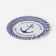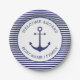 Custom Welcome Aboard nautical anchor blue stripes Paper Plate