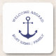 Custom Boat name or Family name, Welcome Aboard, nautical navy blue anchor white beverage coasters