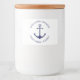 Custom Boat name or Family name, Welcome Aboard, nautical navy blue anchor white background Food Label sticker
