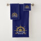 Custom Welcome Aboard Nautical Ship Wheel Blue Bath Towel Set