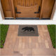 Custom welcome door mat with black bear logo design. Black and brown entry rug for front door with personalised family name. Elegant typography with modern animal silhouette. Available in small and large size. All customisable colours. Also great for cabin or camping. Stylish home decor accessories for new home, estate, country house, condo etc.