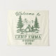 Celebrate a milestone birthday with a unique camping twist! Our "Welcome to Camp [Name]" custom tapestry is the perfect backdrop for outdoor-themed birthday parties, especially for nature lovers and adventure seekers. Featuring a rustic cabin, towering pine trees, and mountains in a vintage sketch style, this personalised wall hanging is ideal for decorating tents, cabins, or party venues.