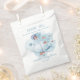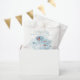 Custom whale baby shower guest thank you favour paper bags. Cute design in blue and white, fully editable with a message (thank you for showering the baby with love in the example), the mum-to-be name, and the party date.