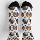 These custom white 2 pet photo socks feature photos of your two pets (or two photos of the same pet!) in a row pattern with blue paw prints, and are the perfect custom socks to feature your dog, cat, or anything with paws! This is a great gift for the pet lover or sock lover and a great Christmas stocking stuffer!