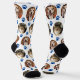 Custom White 2 Pet Photo Blue Paw Prints Socks