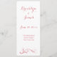 Custom white and pink (Strawberry Ice) wedding menu custom invitations with customisable text