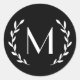 Custom White Black Laurel Monogram Letter Initial Classic Round Sticker