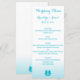 Custom white and blue (scuba blue) seahorse wedding menu cards with customisable text