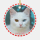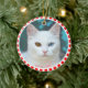 Custom White Cat Photo with Red & White Frame Ceramic Tree Decoration