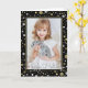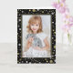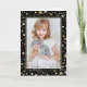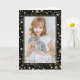 Chic greeting card with a pretty and modern script font on a trendy winter holiday season white and gold looking snowflakes and polka dots pattern on a black background. With option to customise or personalise with a photo and (limited) text of your choice. Ornate, elegant, stylish and eclectic December Holiday themed design for the fancy artistic hip crafter, vintage retro art style or abstract digital geometric motif lover. Available on a variety of modern office products. Such as address labels, wrapping and tissue paper, gift tags, bags and favour boxes, stickers, ribbons, notebooks, binders, stationery and envelopes.