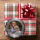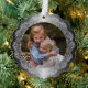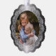 Contemporary classic Christmas holiday season ornament card with ivory cream off-white coloured mandala wreath on a classic faux silver metallic background. With option and room to customise the text, family name and year date, and add a personal photo of your choice on the front, and a customisable season greeting message on the backside of the card.