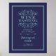 Navy and pool blue custom art print is the perfect gift for the wine lover. The design has a vintage wine label style and features the wording "Wine Tasting - Everyday 5pm to Midnight". Personalize this stylish and unique wall art with your last name!