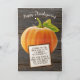 Unique, classy, trendy, pretty and decorative Thanksgiving holiday card. Cute WITH LOVE FROM text and room to customise or personalise with a photo and names (or family name) of your choice. With cute classic orange pumpkins on a weathered looking grey rustic farmhouse inspired barnwood planks pattern background design. And a customisable season greeting poem on the inside of the card.
