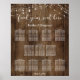 This rustic, elegant suite of designs presents popular design trends combined in a fresh way. With a rich brown wood background and dual strings of twinkling light accents, I've combined a beautiful modern script font to render graphics depicting key words and phrases in the design set. In this poster design, the elegant calligraphy reads "find your seat here". All other text can be edited with your personal details. This collection is ideal for a casual or country post-wedding reception or celebration event. All layers are unlocked to allow you as much control as you desire. // This custom table setup is less typical than many reception layouts. The larger table for wedding party and family members was placed in the centre of the room, and I decided to make this layout available for other couples who may also need a similar setup.
