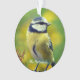 Custom yellow-breasted blue chat bird photo personalised Ornament. Ideal for everyone! Text on a semitransparent background only on the front side!
