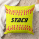 Custom Yellow Fastpitch Softball Throw Pillow. Bright yellow colour matches a standard collegiate softball perfectly. Simply add the name of your favourite player in the text box to personalise it. Text box info is totally customisable - you can enter any variety of numbers or text. Would make an outstanding gift for softball seniors, coaches, players and fans.