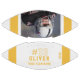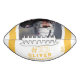 Custom Yellow Player Name Number Team Photo Football. The text is trendy white and yellow typography on a white background with yellow stripes. The football includes placeholders for a player's photo, name, team name, number and year. Perfect sports keepsake for athletes and teams.