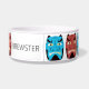 This pet bowl features traditional Japanese folklore oni demon in a blue and red repeat pattern. Personalise it with your pet's name!