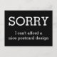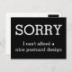 Funny Text & Wisdoms Ideas & Designs by EDDA Fröhlich / EDDArt | SORRY, I can't afford a nice postcard design | You miss other colours or products with this design? Feel free to contact me: contact@eddart.de or have a look here: www.zazzle.de/eddartiful* and here: www.zazzle.com/eddartshop*
