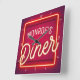 Personalise this truly unique, one-of-a-kind Retro Vintage American FAUX Neon Sign Style Custom Retro Diner Gift. Perfect addition to your retro home kitchen decor! Personalised with your Name or Custom Text! The coolest 1950's look around... Faux Neon Sign - Rockabilly Hot Rod Hotrod Kustom Mum's Diner Cafe