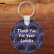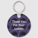 Express your appreciation to your loyal customers with a keychain featuring a modern abstract pattern. This thank you sticker is adorned with layers of overlapping circles with a swirled purple and black pattern. "Thank You For Your Loyalty" appears in the centre in white font and can easily be customised if you desire.