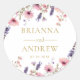 Personalised wedding stickers feature a beautiful floral design, pink & purple, can be personalised with your names & date.