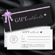 Customer specific, black & purple bow, Logo Business Gift Certificate | for you, easy to personalise. Perfect for Small Business, Makeup, Lashes Artist's, Beautician and more.