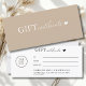 This minimalist and chic gift certificate design in soft beige features a modern and timeless aesthetic. Perfect for businesses looking to add a personal touch, this editable gift certificate allows you to easily upload your logo and customise the recipient, sender, and amount fields. The elegant font and subtle heart detail make it ideal for showcasing your brand's professional and sophisticated image.