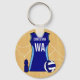 Design features a netball uniform in sky blue royal blue and whie with fully customizable Name and netball position, it also features a colour co-ordinating netball and sports water bottle and on the background is a wooden netball court. This unique netball design makes a great gift or netball team memento or award for the budding netball star