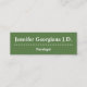 This minimal, customisable, and plain business card design features a green background, and a row of diamond shapes. It could be used by a professional such as a paralegal, lawyer, counsellor at law or barrister at law. The name, profession and contact details can be personalised.