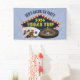 Customise your own bachelor party banner for a Las Vegas trip. Cool personalised decor featuring gambling casino staples such as a deck of cards, poker chips, and roulette wheel with Vegas Trip in yellow script. Fun gambler getaway bash for your groomsmen and best man.