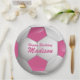 Customisable Birthday Soccer Ball Pink and White Paper Plate