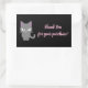 A customisable cute black Thank You rectangle sticker with grey cat to express your appreciation towards your customers for purchasing your products. Your customers will love these thank you stickers.