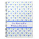 A pretty, customisable Spiral Notebook, with a pattern of bows and spots in blue and green on a white background from a handpainted design by Judy Adamson.