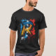 I give wanted to give this a 4 instead of a 5 because these Basic DARK T0shirts run unexpectedly SLIM or Narrow. Which is great if you do not have a potbelly, but I have a paunch. It isn't the shirt's fault that I've got a beer belly. The design and shirt itself is a quality cotton shirt. The color is more of a deep purple, but still a very pretty color. The Basic DARK T-shirts run a bit SLIMMER than the Basic Ts. The neck is a fraction narrower (or seems to be narrower) also. I'm a paunchy middle-aged woman and my neck is 12 inches (31cm) thick and the neckline fell about the same as in the photo of the man, and I had the desire to tug it a bit. So if you're a thick necked man or like loose shirts, be aware these are slimmer shirts. Once I get rid of my lockdown paunch it'll look great. The shirt washed well in cold water with no apparent bleeding. We don't have a dryer, so it hung dry. Did not shrink. Love the colors and the design. The design looks smaller on my shirt than it does on the model on-line. But still, it looks good on the shirt. The printing looks as it does on the model, just the size seems fractionally smaller. Washed garment in cold water, hung dry and design appeared unaffected.