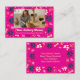This business card is designed for cattery and pet boarding owners who want to add a personal touch. The card features a large customisable photo frame on the front, allowing you to showcase your cattery, staff, or kittens. The design includes a playful pattern of colourful paw prints and bones, creating a warm and friendly feel. It's fully customisable, with dedicated spaces for your cattery's name, phone number, website, email, and social media information. This versatile card is perfect for connecting with clients and sharing your passion for cats.