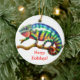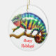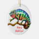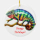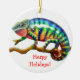 Original fine art design of a colourful Panther Chameleon by illustrator Carolyn McFann of Two Purring Cats Studio on a quality holiday ornament for herp (reptile) lovers.