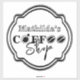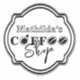 In the middle of the sticker, the word coffee is written using a coffee cup and coffee beans.