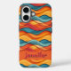 This customisable iPhone 16 case is great for colourful souls. It offers a wave pattern dominated by warm colours and few blue shades. Just change the text with your friend's name and create the perfect gift for your friend.