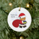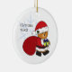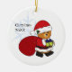 Cute, customisable Christmas ornament featuring this adorable Santa Teddy Bear. He's all ready in his red coat, hat, boots, and is carrying his big bag of gifts! Customise the text as you like, or erase it. Side two shows a decorated tree with gifts and more customisable text.