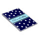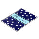 White dots on a navy background with blue strip and customisable name.