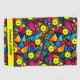 This golf towel features a seamless pickleball pattern with a vibrant array of geometric shapes, predominantly triangles, creating a captivating visual. The triangles form the foundation of the pattern, creating an energetic grid-like backdrop. The lively colours include bright shades of green and blue, representing the lush golf course and the sky. The bold black borders provide a sharp contrast, reinforcing the structure of the design.