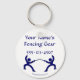 A fun keychain bag tag for your fencing equipment gear bag, backpacks and more. Enter Your name and/or text of your choice and include your phone number or email if you like. A great way to quickly recognise your bag at the club, salle, or tournaments. Other colours/styles also available. Makes a great, unique fencing gift!