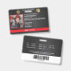 The customisable fire department ID badge features a firefighter emblem at the top that can be customised to your department as well as a place for the state logo as well. Customise with the firefighter's photo on the left. Beside the photo, the firefighter’s name, badge number, rank, and department are displayed. Add your own barcode to the back of the card, along with issue and expiration dates, and description of the firefighter, captain, chief, or office employee.