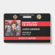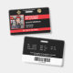 The customisable fire department ID badge features a firefighter emblem at the top that can be customised to your department as well as a place for the state logo as well. Customise with the firefighter's photo on the left. Beside the photo, the firefighter’s name, badge number, rank, and department are displayed. Add your own barcode to the back of the card, along with issue and expiration dates, and description of the firefighter, captain, chief, or office employee.