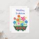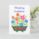 A chic, modern Wedding Invitation from the Bride and Groom, with a window box full of colourful flowers, from the 'Flower Power' handpainted paper collage range by Judy Adamson. Fully and easily customisable.