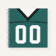 8.5" x 8.5" Spiral Notebook with laminated covers, and a choice of paper style, including sketchbook, ruled, half ruled, graph. The front and back of the notebooks have customisable jersey style designs, allowing you to add your own choice name and number to the back, and number on the front, use the boxes to the right of the image to change the text.