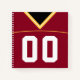 8.5" x 8.5" Spiral Notebook with laminated covers, and a choice of paper style, including sketchbook, ruled, half ruled, graph. The front and back of the notebooks have customisable jersey style designs, allowing you to add your own choice name and number to the back, and number on the front, use the boxes to the right of the image to change the text.