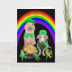 On this card with two cute dogs dressed very Irish, you can change the background colour on the front. You can customise the text, and change the font, font size and colour. The leprechauns were public domain clip art and so was the rainbow( They could be deleted if you prefer.)